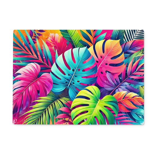 Colourful Tropical Leaves Glass Chopping Board